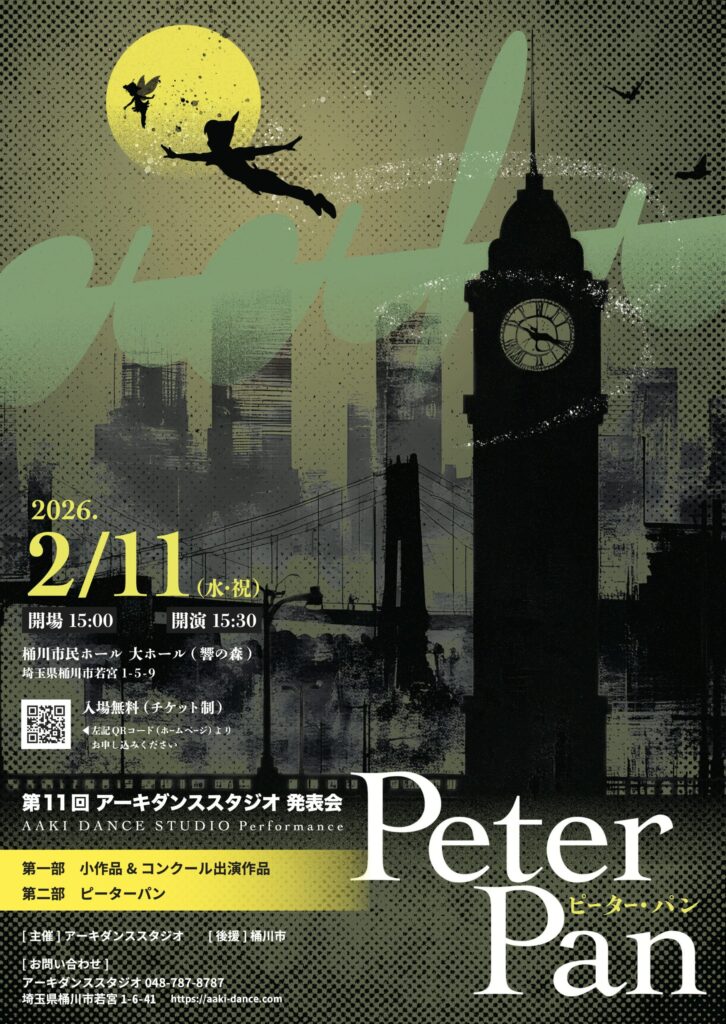 2026年2月11日(水・祝)にアーキダンススタジオの発表会を開催いたします。 第1部ではコンテンポラリーダンスとストリートダンスの気合いの入った小作品。また、コンクール参加・受賞作品を上演いたします。 第2部では生徒全 […]